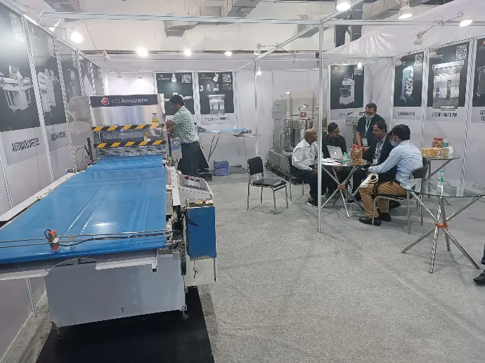 Our equipment were being demonstrated at Hall 1, stall no. C43. We showcased our star product Khari and Pizza Cutting Line along with Double Arm Spiral Mixer and Manual Sheeter amongst other equipment. Videos demonstrating the working of our machines were constantly on display. It gave a lot of clarity to customers on the functionality of our machines. Live Demos attracted a lot of customers who were inquisitive to know more about the machines.