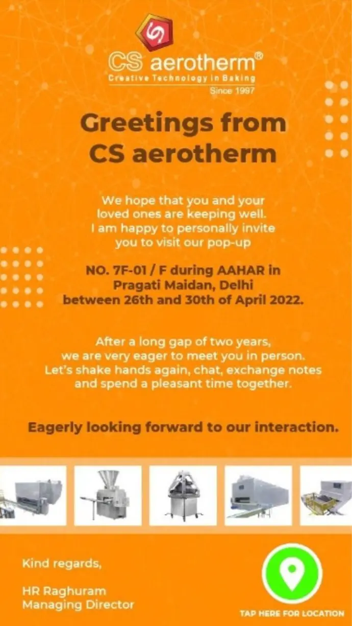 Aahar is the biggest food processing exhibition held once a year at Pragathi Maidan, New Delhi. It hosts major manufacturers and is attended by more than 3000 people.