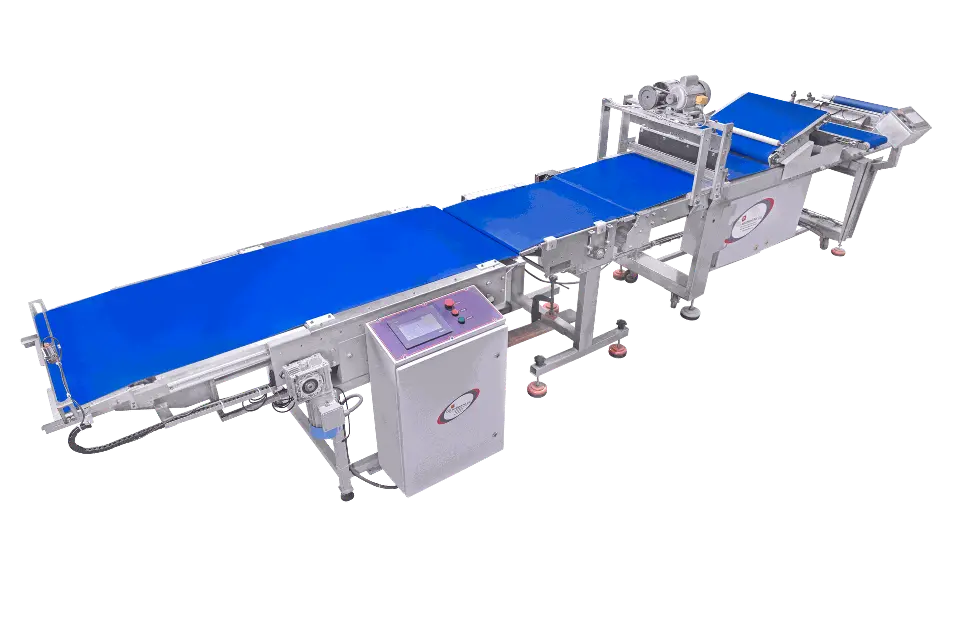 The capacity of the package varies from 2400-2800 pieces per hour depending on the size of the pizza base. The bigger the size the lesser the capacity.
