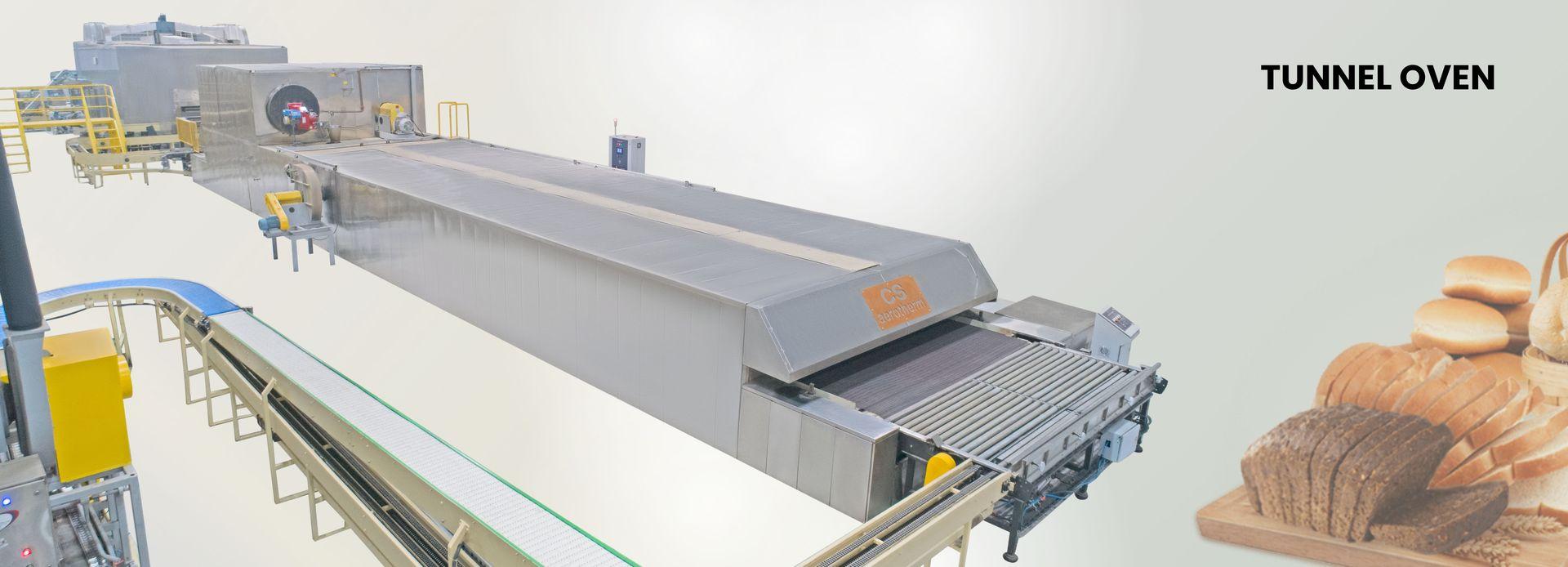 CS aerotherm brings to you our very own cyclothermic Tunnel Oven. It can be either used as an independent unit or can be integrated with an automated production line. It caters to large bakeries and production lines. Being a universal oven, it can be used for continuous baking of different types of bread and pastries at temperatures that can go as high as 320°C. It boasts of an extremely safe operation at high temperatures with it's foolproof safety mechanism. It is well equipped with high quality insulation and ensures better efficiency. Our tunnel oven is loaded with an automatic drought regulation mechanism that leads to energy saving. With it’s unique forced air circulation system in the baking chamber, it assures you of a better heat transmission that is highly recommended for products like tin bread and rusk.